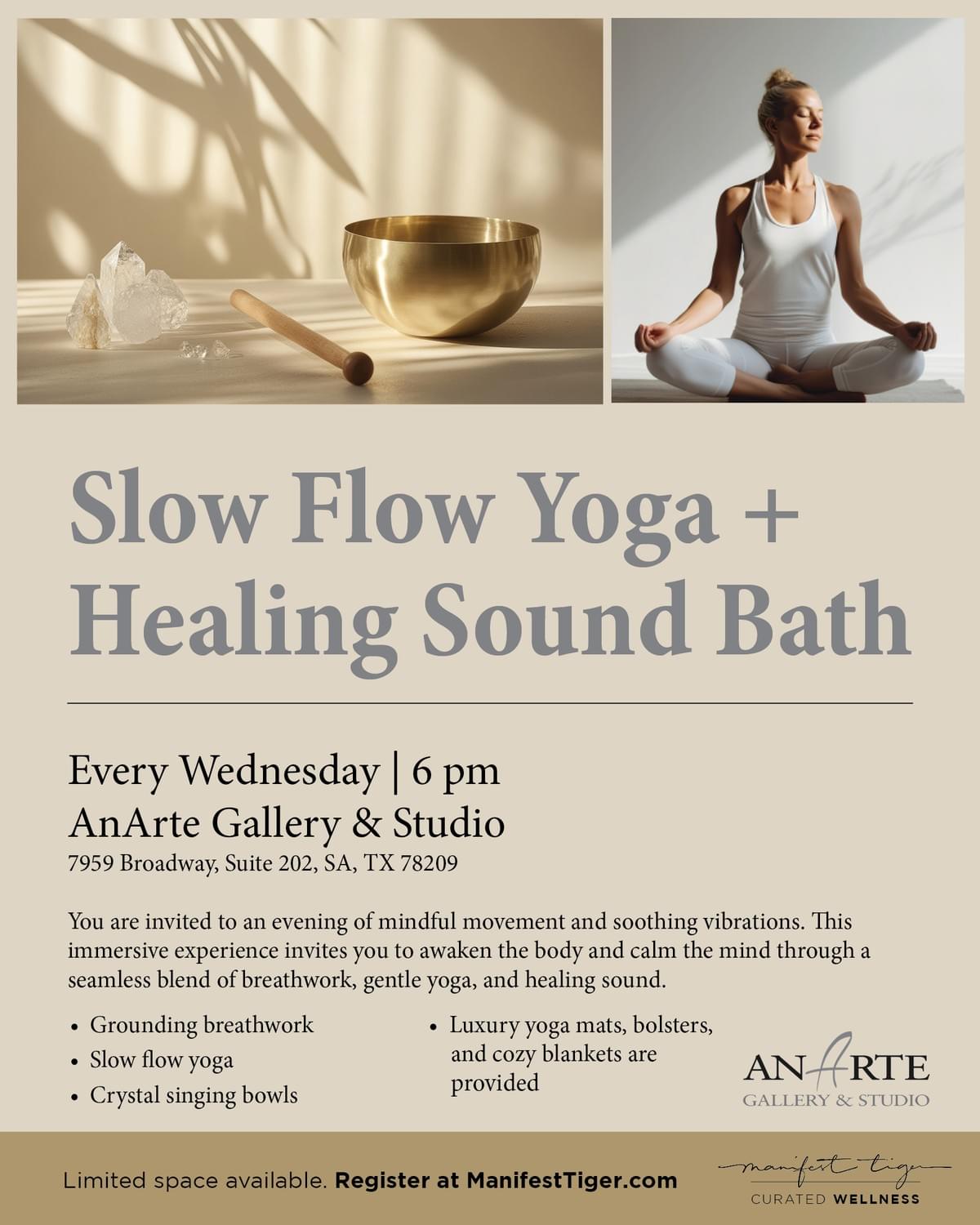End your day with mindful movement and soothing vibrations. This immersive self-care experience invites you to awaken the body and calm the mind through a seamless blend of breathwork, gentle yoga, and healing sound.